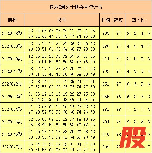快乐8第2026047期奖号开出:05 14 16 21 22 28 31 34 37 40 50 51 55 62 63 64 74 75 77 80,其中奖号和值为899,跨度为75,四区比为3:7:3:7。