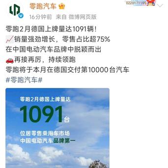 【零跑背靠Stellantis渠道,出海就是降维打击】零跑这波出海真的稳了!2月德国上牌1091辆,中国电动车品牌零售第一,本月还将交付第10000台,这速度谁看了不喊一句牛!