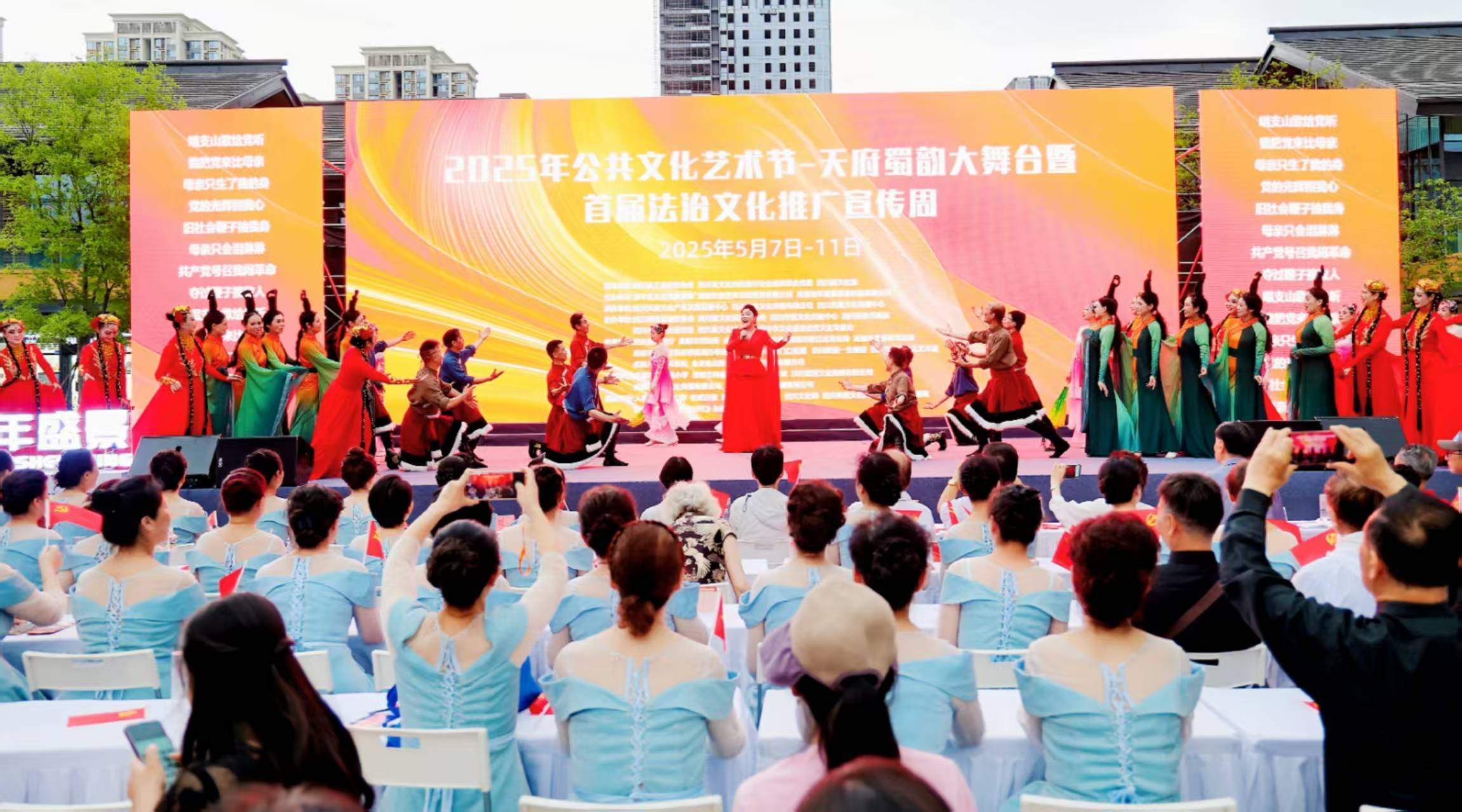 百花齐放,艺术展演营造美好氛围;文化润心,法治春风护航和谐社区。为深入贯彻落实党的二十大精神和2025年省文化、旅游工作和普法依法治省工作要点,着力推动文化事业繁荣兴盛,开展“百团百队”直达基层惠民演出活动的指导精神股门在线,锚定“文旅+百业”,聚焦文化旅游高质量发展,加强社会主义法治文化建设,撬动四川省广大群众文化队伍与优质品牌企业共同参与,5月7日,以“蜀韵华章,法润天府”为主题的2025四川公共文化艺术节蜀韵天府大舞台暨首届法治文化推广周(简称:艺术节)于成都天府艺术公园A区火热举行。